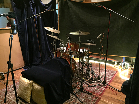 With all the inevitable large swirling psychedelic guitars and synths to come, we decided on a tight, smaller room drum sound, with a couple well placed room mics that allow us to expand the drums into a more splashy big room sound.