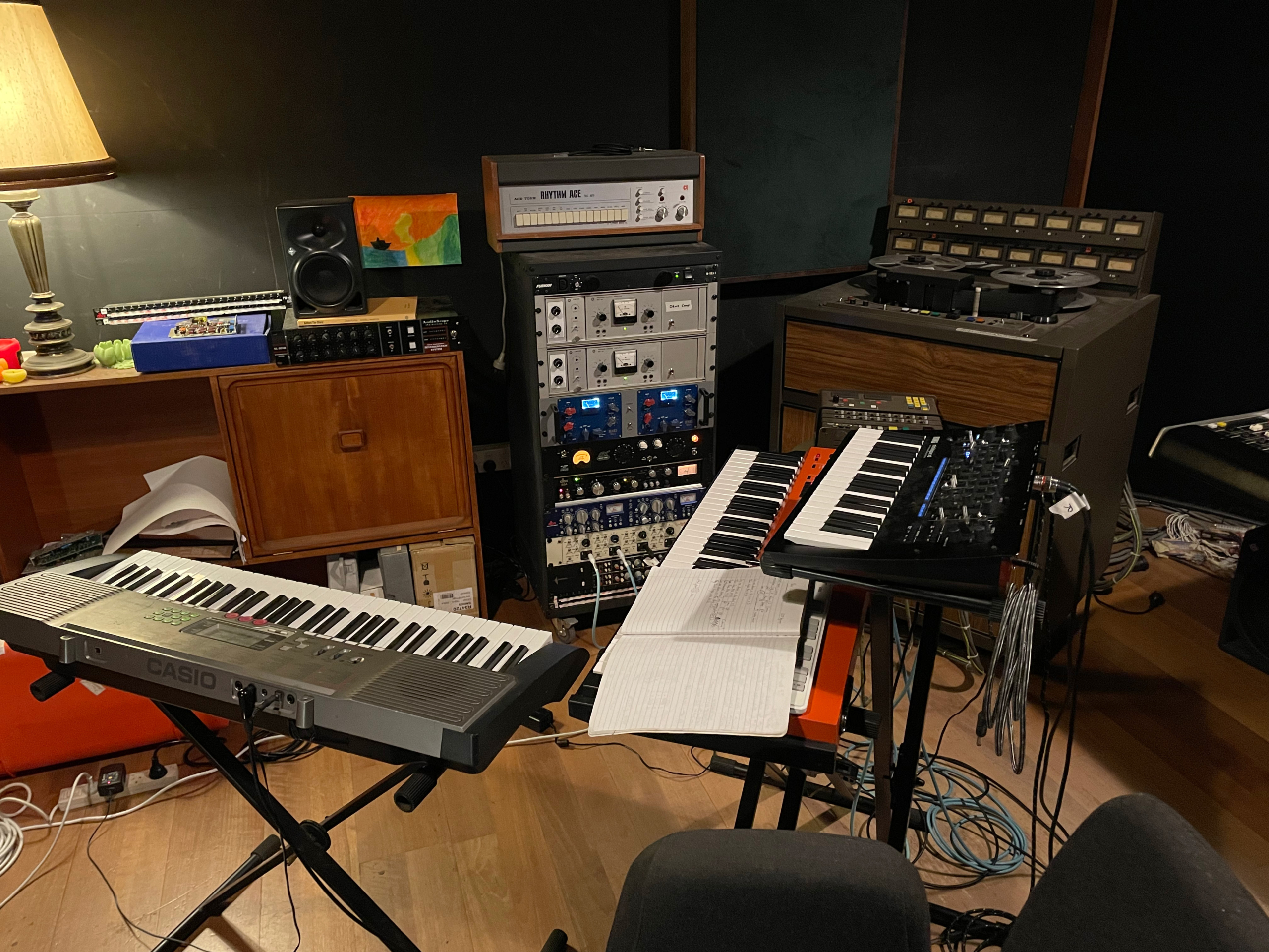 My mic choice(s) for the vocal/ voice over was a Neumann TLM107 + Shure SM7B + Pop-shield. The Neumann lent clarity and upper frequency sheen, whilst the SM7B gave a warm and intimacy. The mics then hit a signal chain of Vintech 573 pre-amps, Warm Audio WA2A compression and then into my DAW on the day, Ableton. The recording was done @ Stranded Recording Studios in Bellambi, see pictures below.